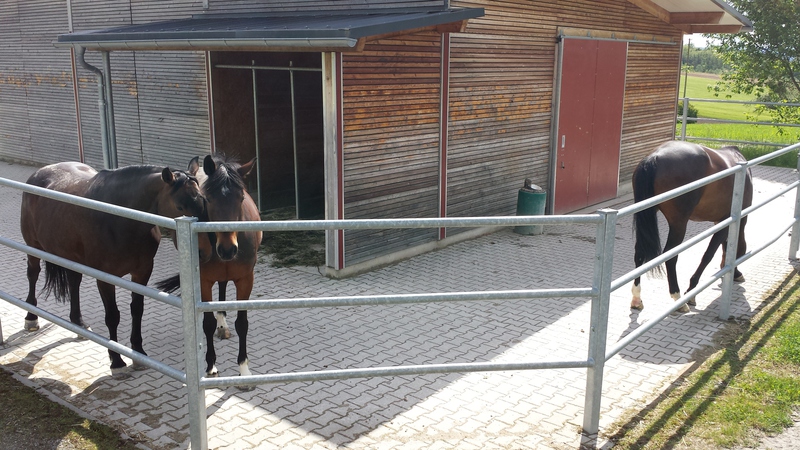 Unsere innovativen Bewegungsställe bieten jeweils Platz für 10 Pferde. Stuten und Wallache sind in kleinere Gruppen geteilt, um das Konfliktpotential zu minimieren. Bei der Integration neuer Pferde lassen wir uns Zeit und geben uns viel Mühe im Sinne der Gruppe und des neuen Bewohners. Die Laufhöfe ziehen sich um die Stallgebäude herum. So werden die Pferde, durch ihre natürliche Neugier, zum laufen angeregt und um Ihre Bedürfnisse Fressen, Saufen, Liegen, Spielen,... zu befriedigen. Dabei legen sie zwischen 3 und 6 Kilometer täglich zurück. Zusätzlich kann jeder Stall, bei trockenem Wetter, über einen "Heim-Koppel"- Zugang verfügen. Ein Mehrwert über die eigentliche Koppelzeit hinaus.